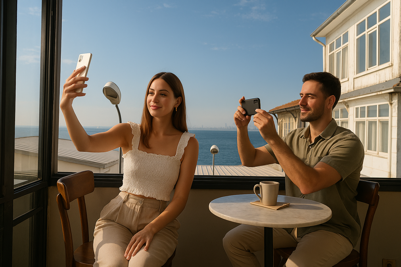 - En İyi Açı Neresi?: Salıncakta otururken, fotoğrafınızı çeken arkadaşınızın biraz aşağıdan ve karşıdan çekmesi, hem sizi hem de arkanızdaki o muhteşem deniz manzarasını aynı anda kadraja sığdırır. Masanızdaki kahve fincanını ön plana alıp arkayı hafifçe bulanıklaştırdığınız bir kare de harika sonuçlar verir; bu, mobil fotoğrafçılık için harika bir tekniktir.